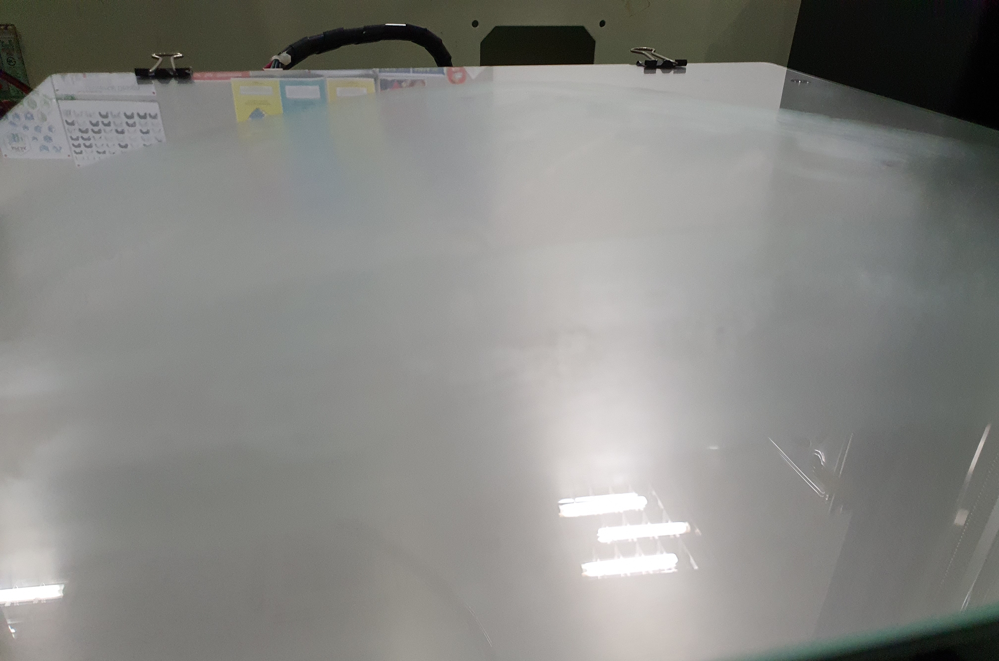 그 뒤 다시 프린트를 하는데 자꾸만 떨어진다. 그래서 유리판에 풀을 펴 바르고