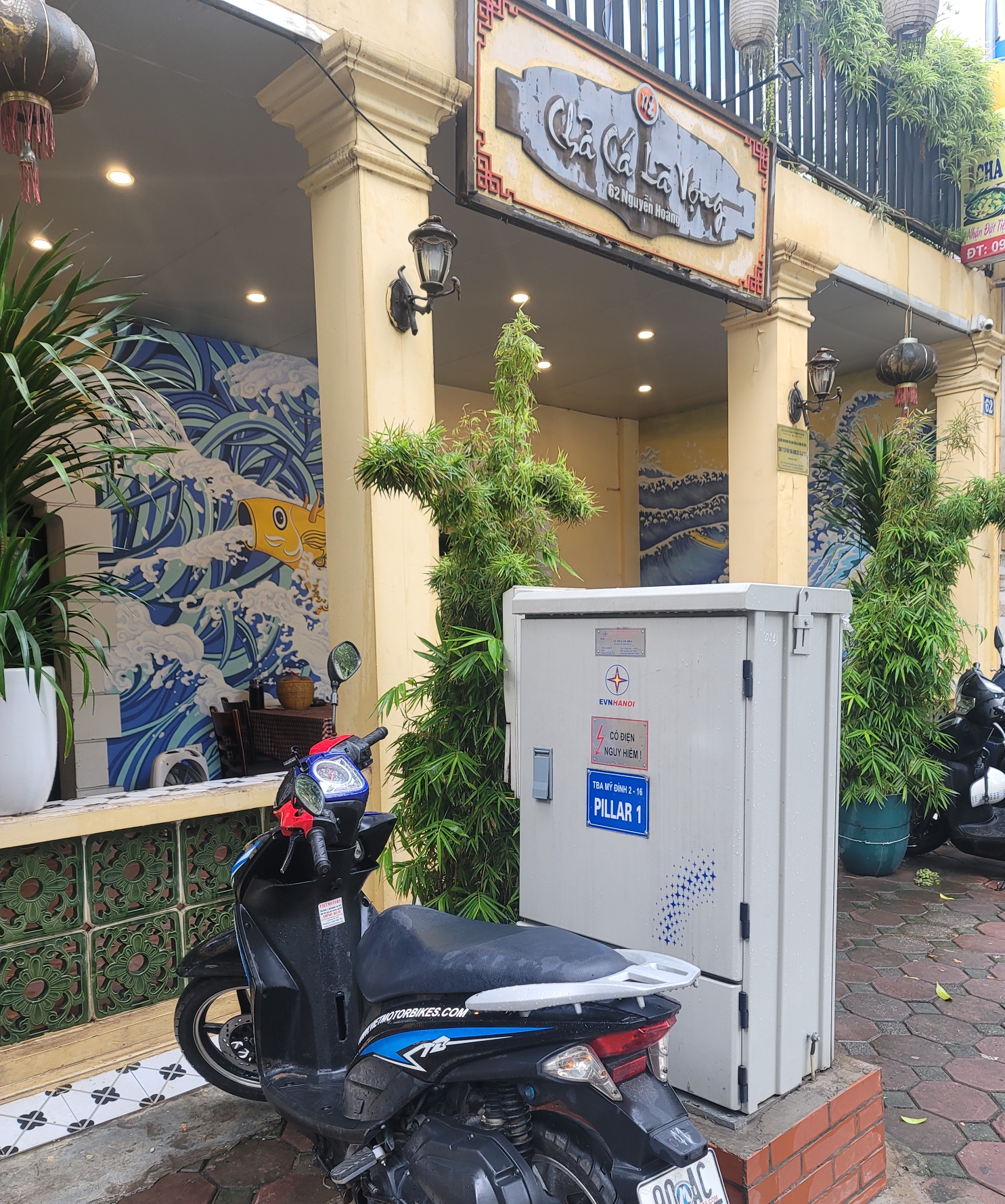 숙소로 돌아와서 좀 쉬다가 저녁에는 다시 올드쿼터로.. 이번에는 세 명이 타고 갔다. 유명하다는 분짜를 먹으러 갔는데... 동네 분짜 가게 가격의 3배가 넘는데 맛은 그닥.. 과연 올드쿼터의 맛집이라는 곳은 찾아가서 먹을 가치가 있는 곳인가 싶다. 저녁을 먹고 콩 카페에 가기 위해 호수 근처에 오토바이를 세우고 주차요금은 2만 동을 지불했다.
